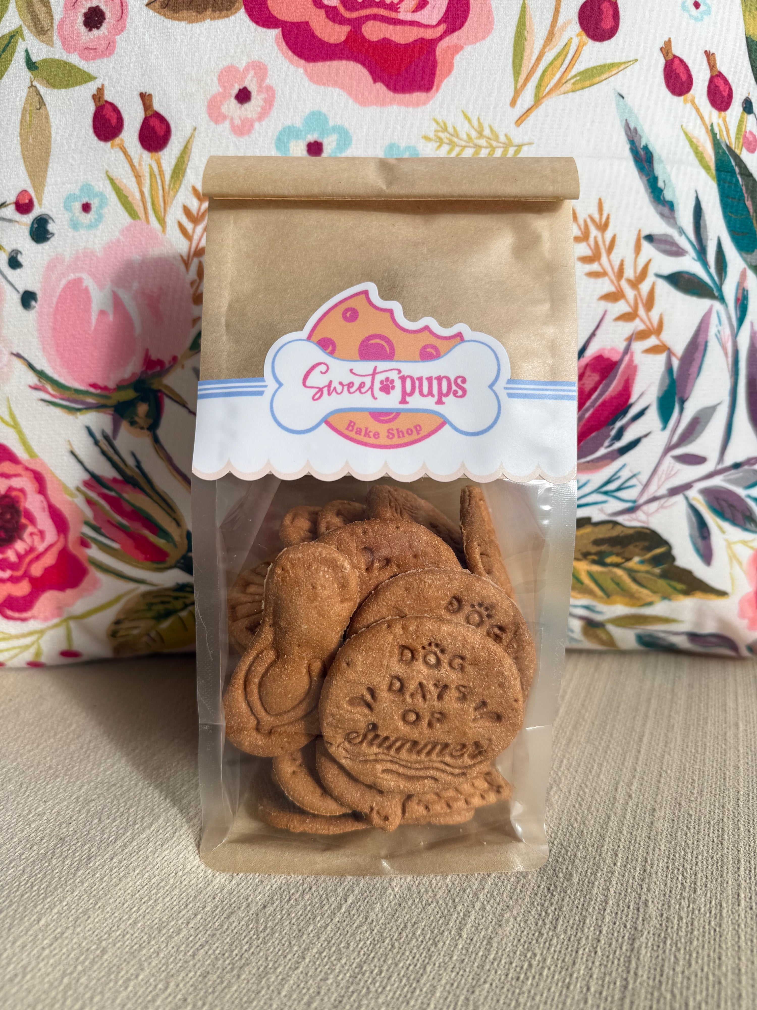 Summer time is finally here! Celebrate the warm weather with our new "Dog Days of Summer" stamped peanut butter treats! Each bag is filled with fun & oh so cute beach themed shapes like flip-flops, sail boats, ice cream cones, and sunshines that will be sure to add some vacay vibes to your dogs day. (Which lets face it, every day is vacay for our spoiled pups. Am I right?!) Made with all natural peanut butter, honey, and whole wheat flour. These treats are so fun! Plain and simple.